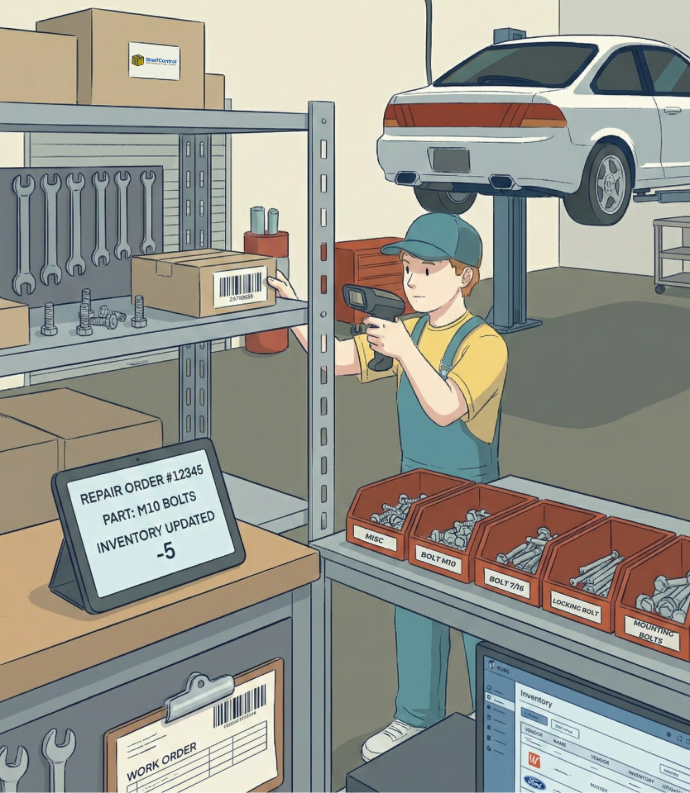 ShelfControl automates part tracking, stock replenishment, and repair orders with barcode scanning and full integration for body and collision shops.